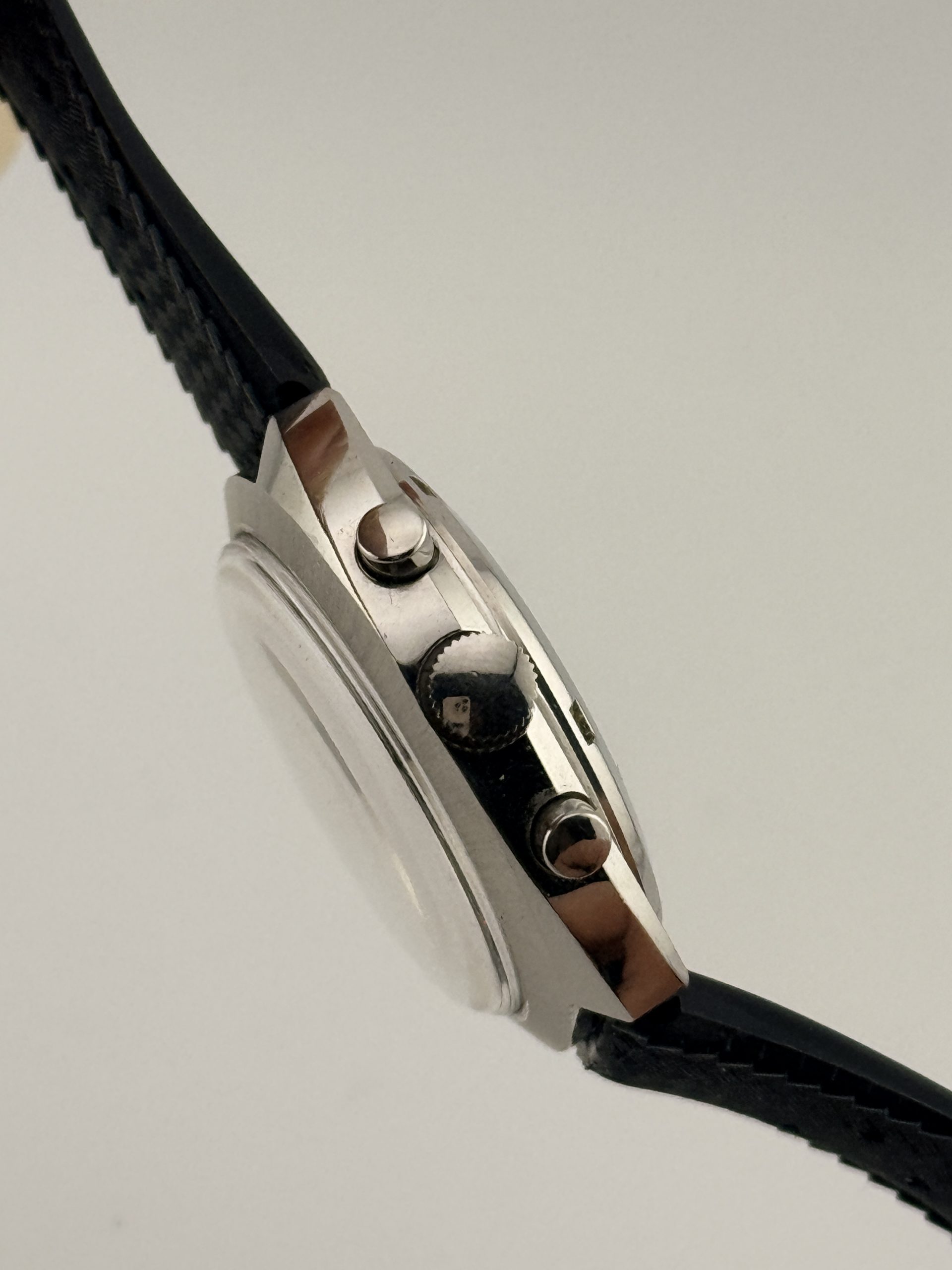 Un cronografo vintage autentico, ricco di fascino e perfetto per chi ama gli orologi sportivi anni โ70 con meccanica classica e forte personalitร .