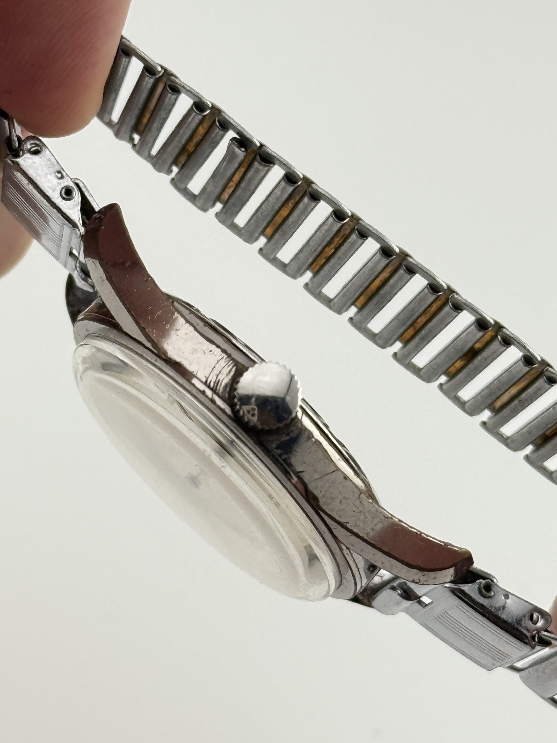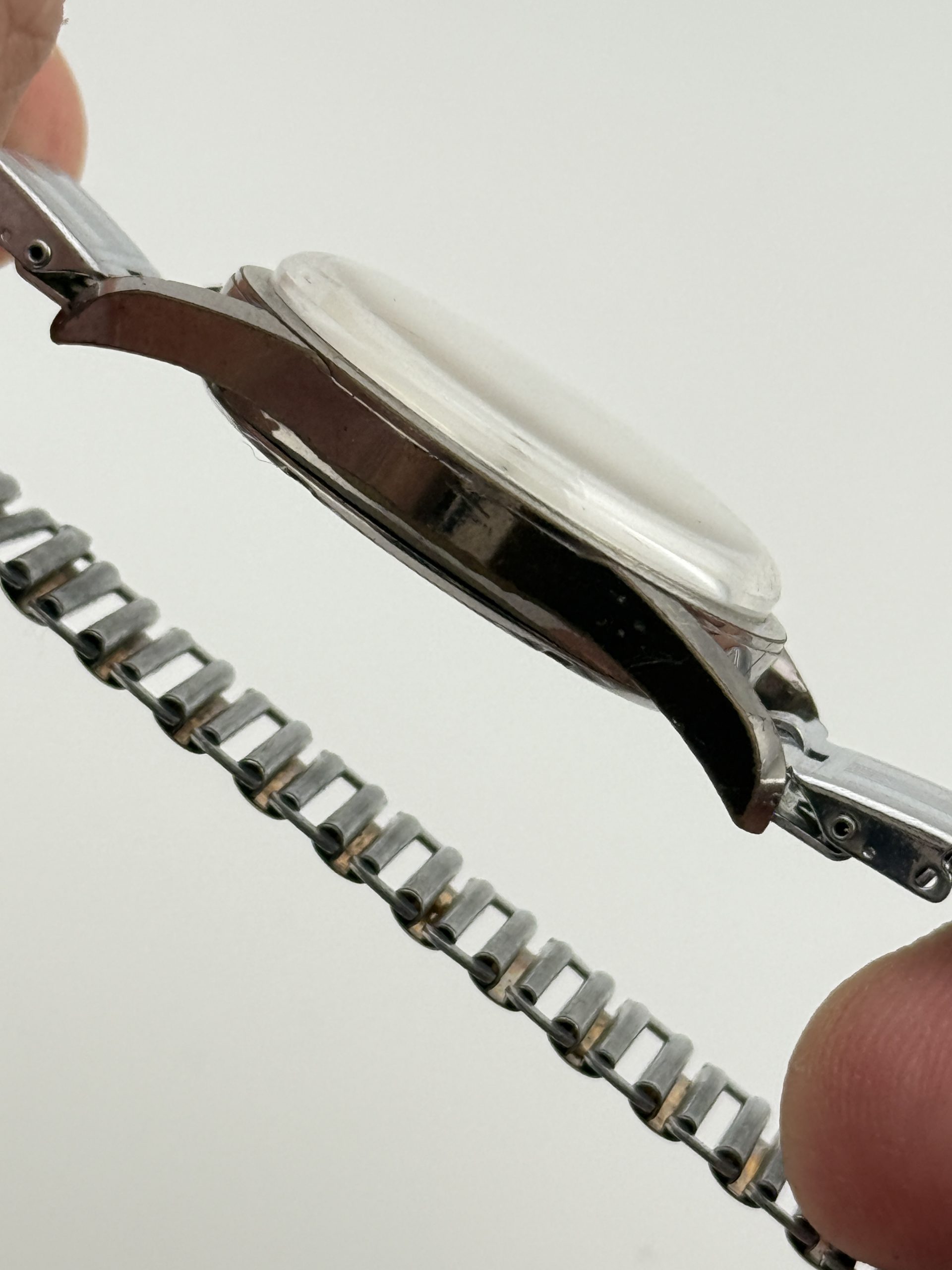 Le condizioni sono buone: la cassa presenta segni di usura coerenti con l’età, il quadrante conserva una bella uniformità, mentre il plexiglas mostra la naturale patina del tempo. Non corredato da scatola o documenti, ma resta un esemplare originale e affascinante, difficile da incontrare con la sua lancetta “jet” intatta.