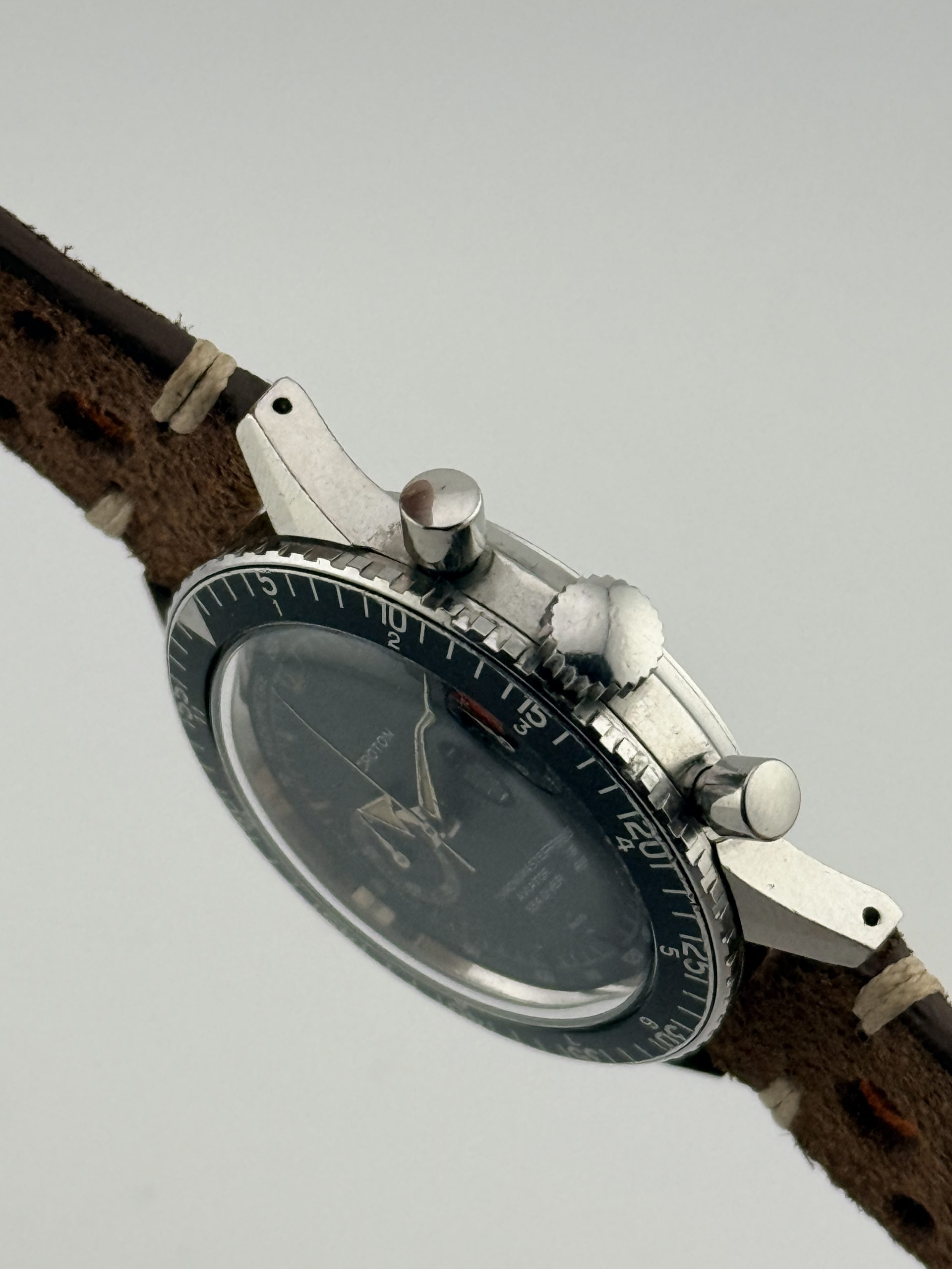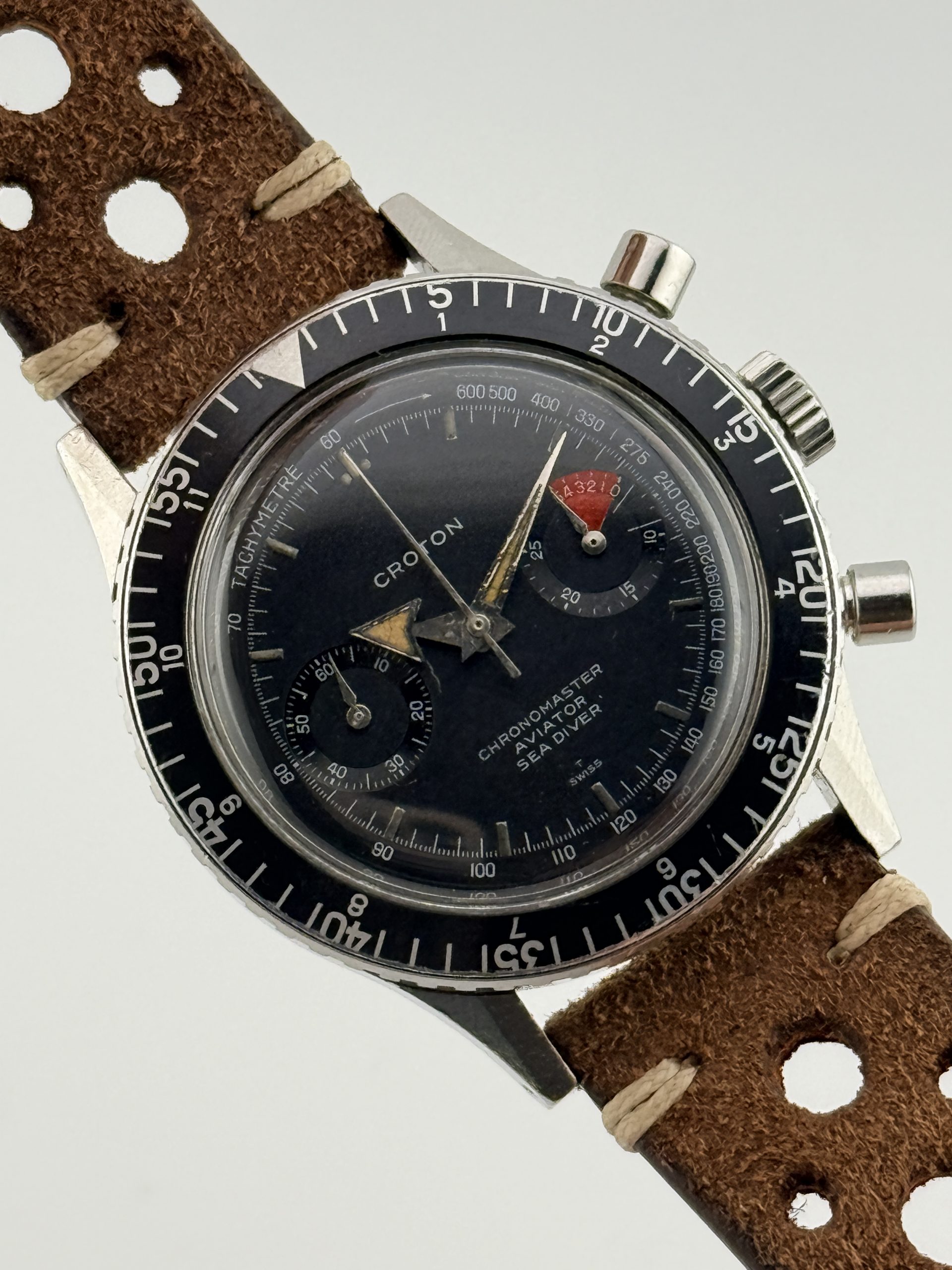 Il Nivada Croton Chronomaster Aviator Sea Diver ref. 105 / 9870 รจ uno dei cronografi sportivi piรน iconici degli anni โ60, un modello leggendario capace di unire tre anime in un unico segnatempo: aviazione, sport motoristici e immersioni. Non a caso il nome Chronomaster Aviator Sea Diver รจ diventato un vero punto di riferimento per i collezionisti di cronografi vintage.