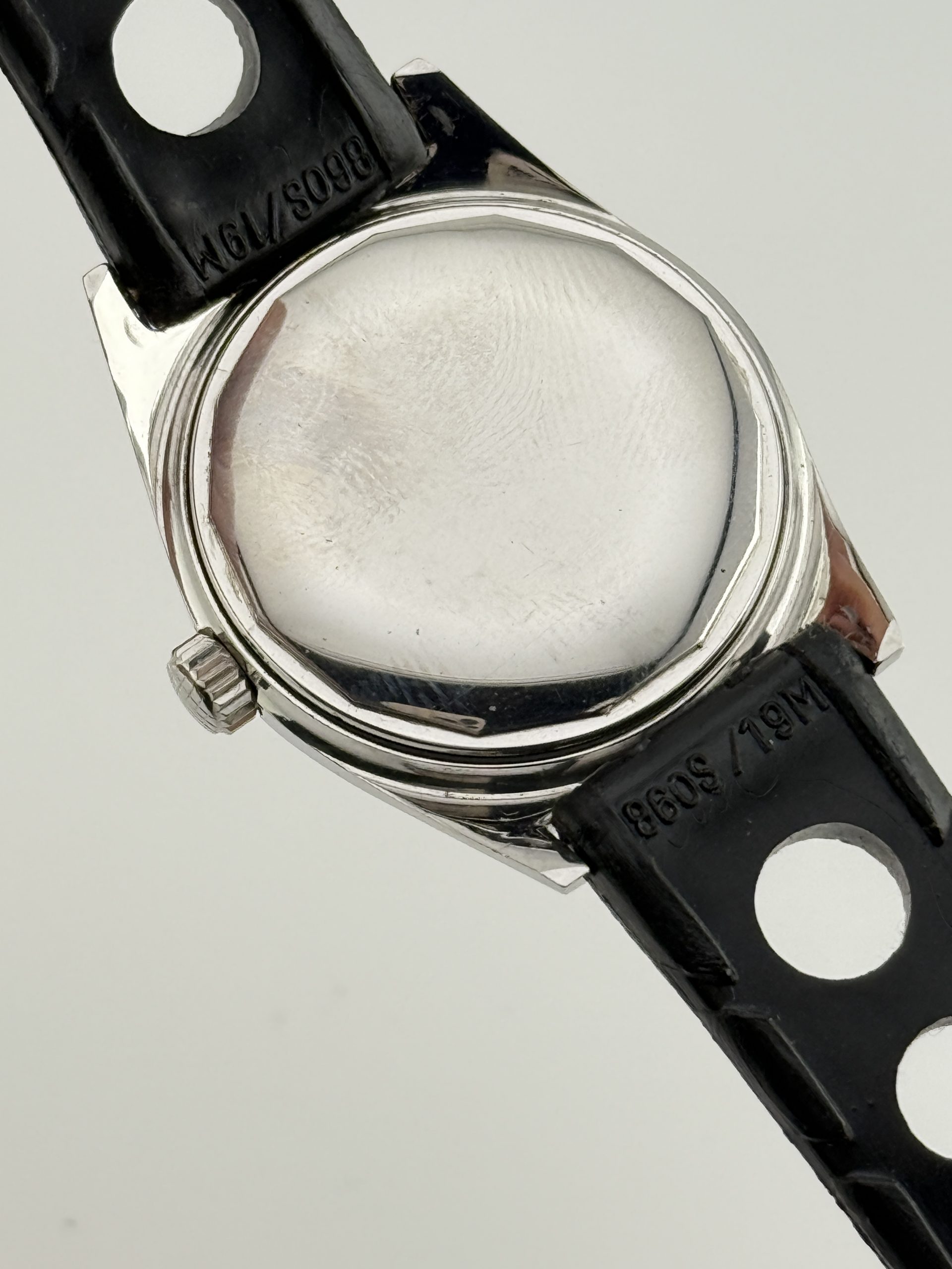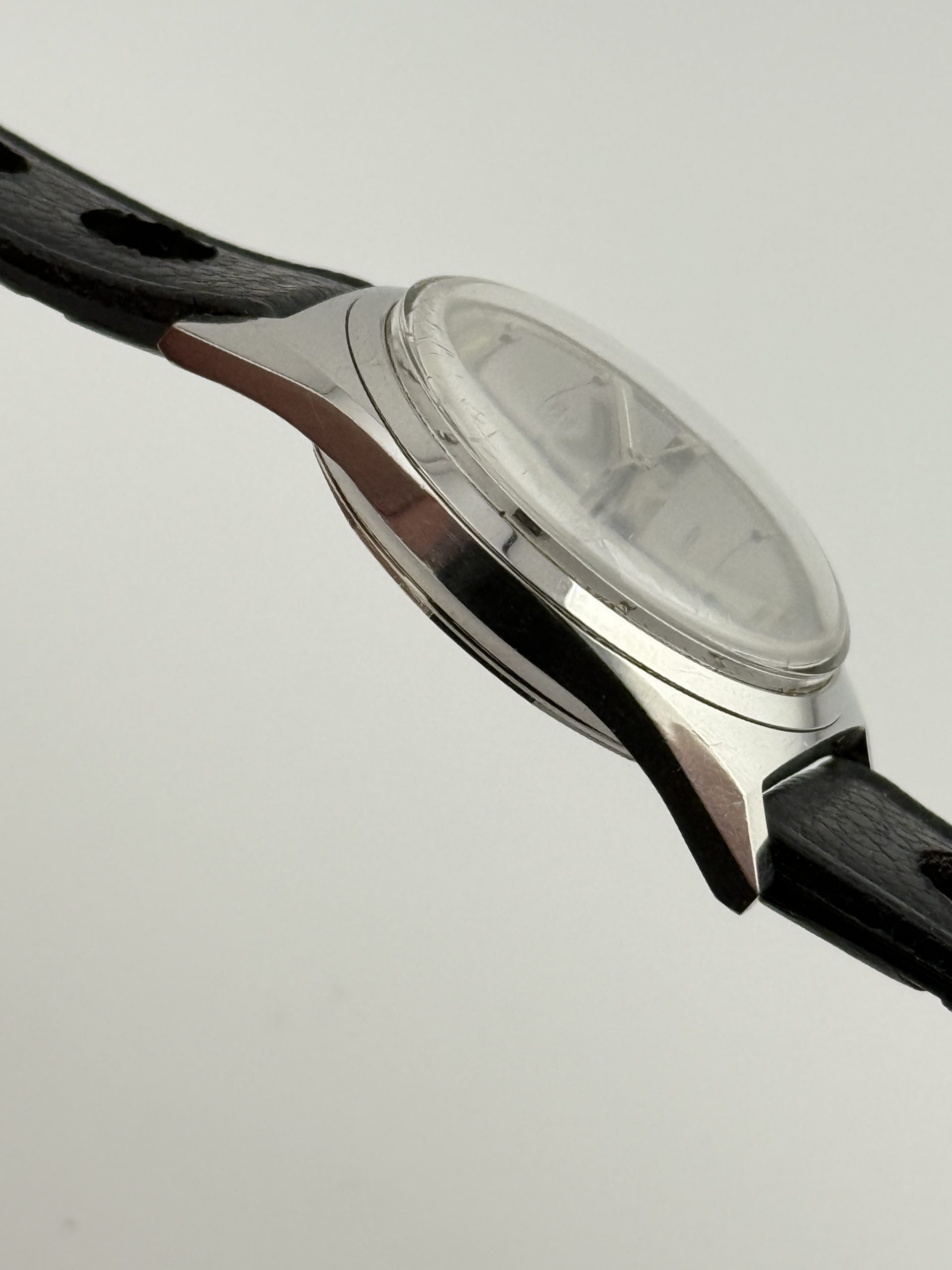 Al suo interno batte il calibro ETA 1080, movimento manuale con 21 rubini, frequenza di 18.000 alternanze/ora e riserva di carica di 42 ore: un meccanismo affidabile, semplice da mantenere e molto apprezzato dai collezionisti.