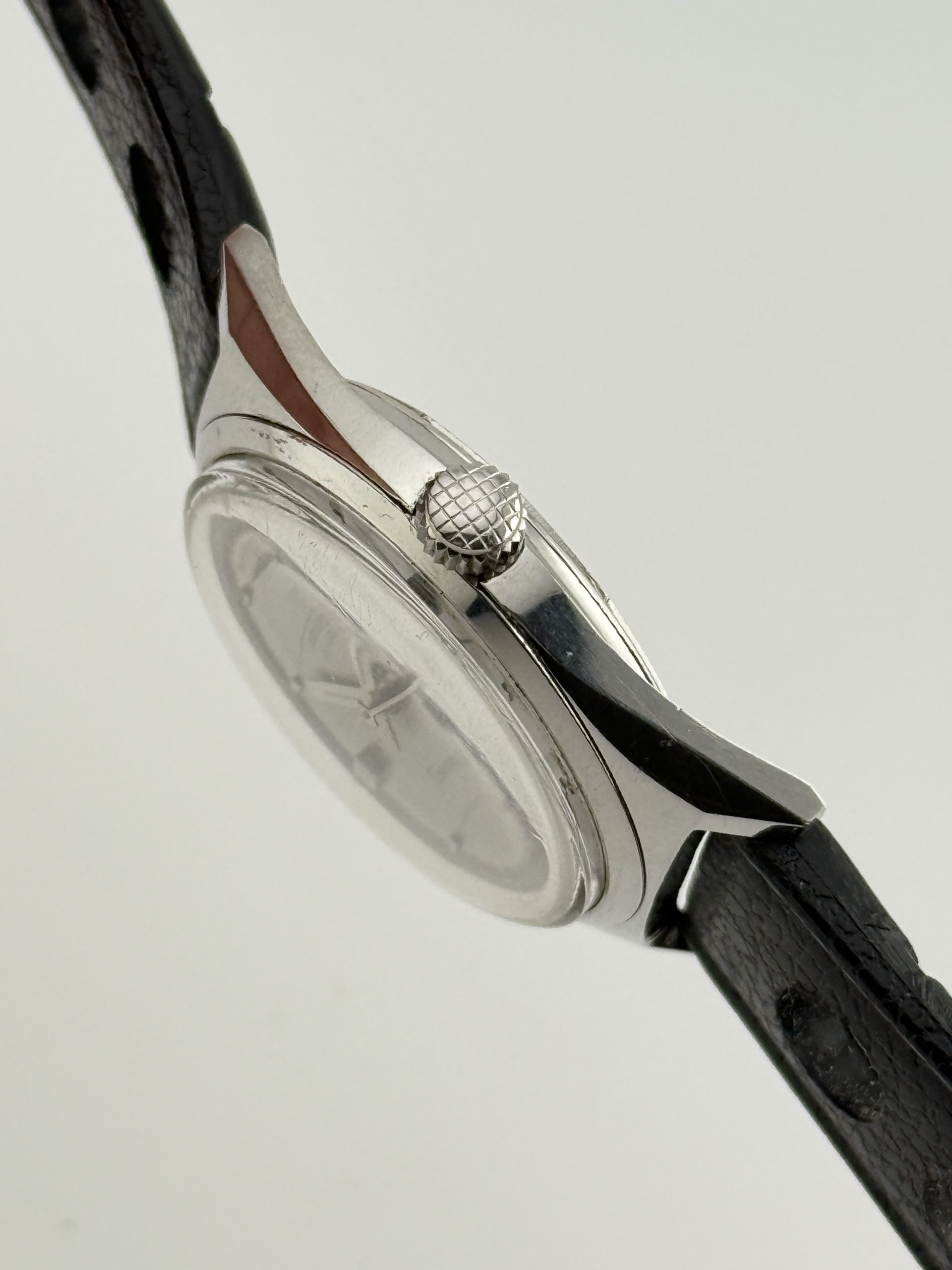 L’impermeabilità fino a 40 ATM (400 metri) lo posiziona tra i segnatempo subacquei di riferimento dell’epoca, un dato tecnico impressionante per un orologio manuale degli anni ’60. Il vetro plexiglas bombato aggiunge fascino vintage, mentre la corona a vite rafforza la sua solidità.