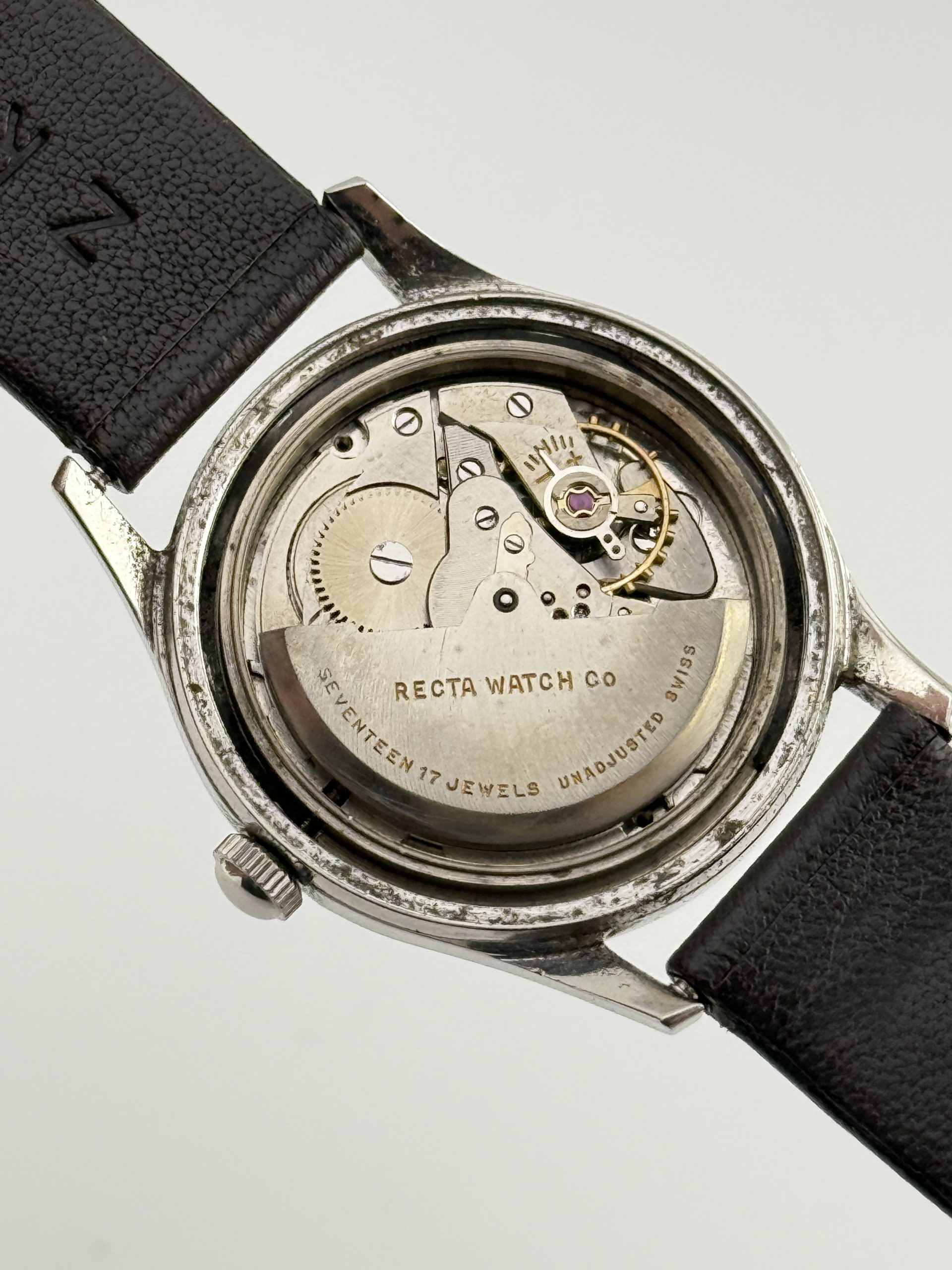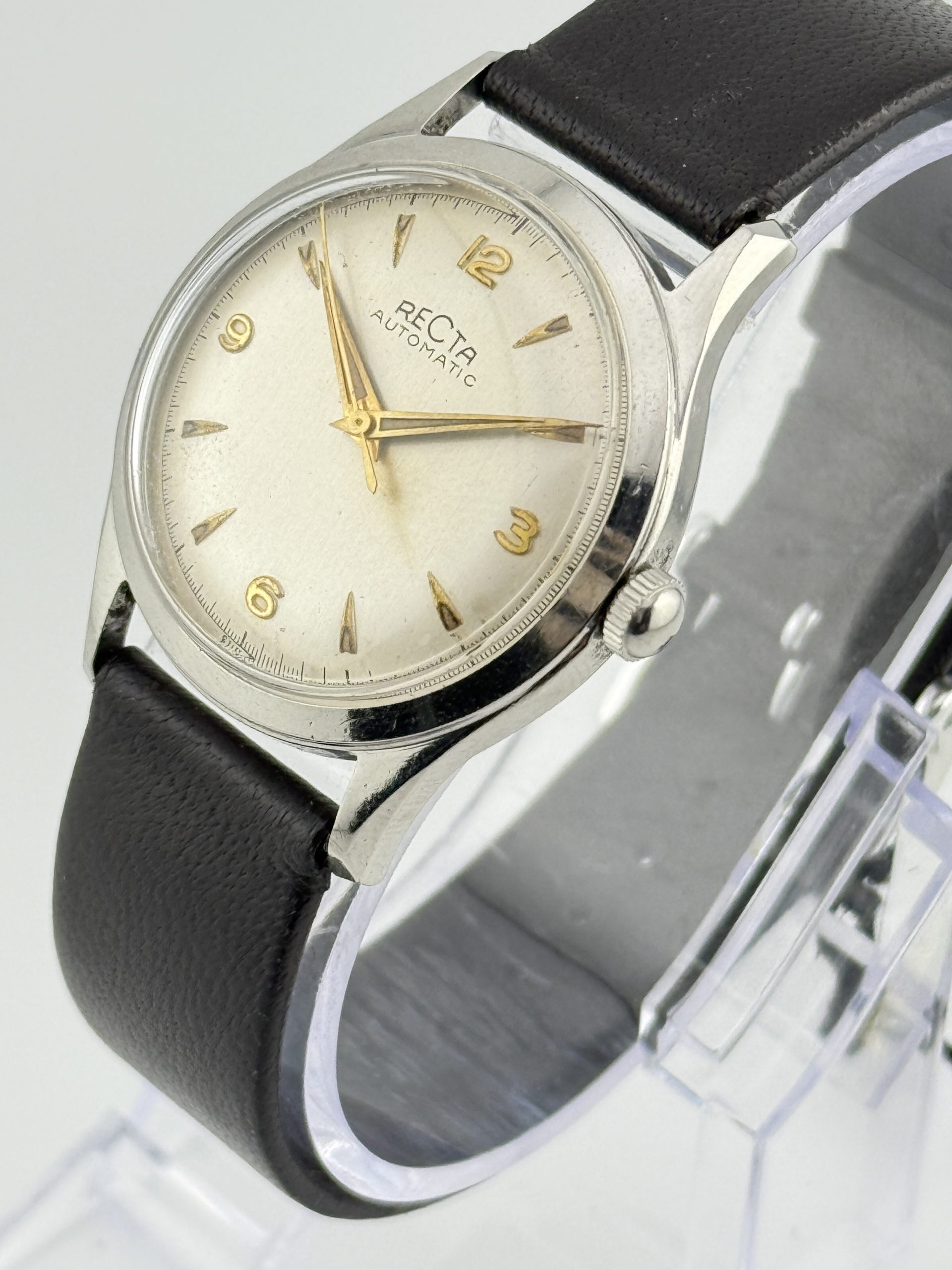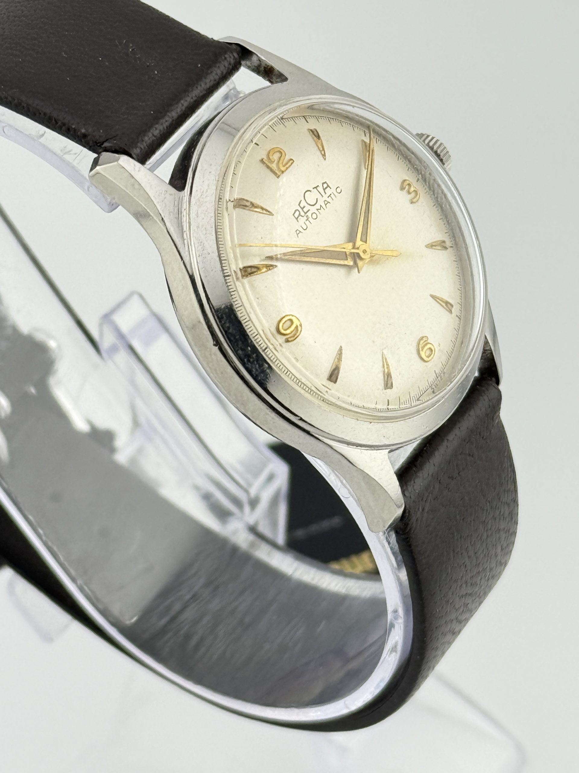 Un nome che richiama subito competizione e prestigio: Recta Grand Prix. Siamo nella metà degli anni ’50, un periodo in cui il design degli orologi automatici iniziava a trovare un equilibrio tra la robustezza sportiva e la sobria eleganza da indossare tutti i giorni.