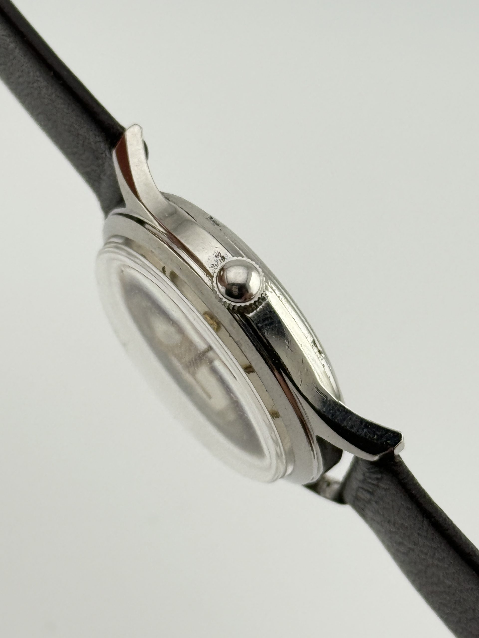 Un orologio che non vuole stupire con effetti speciali, ma seduce con i dettagli, la proporzione e la storia. Un pezzo autentico degli anni ’50, per chi cerca un compagno sobrio, affidabile e con quel tocco di vintage che oggi diventa pura classe.