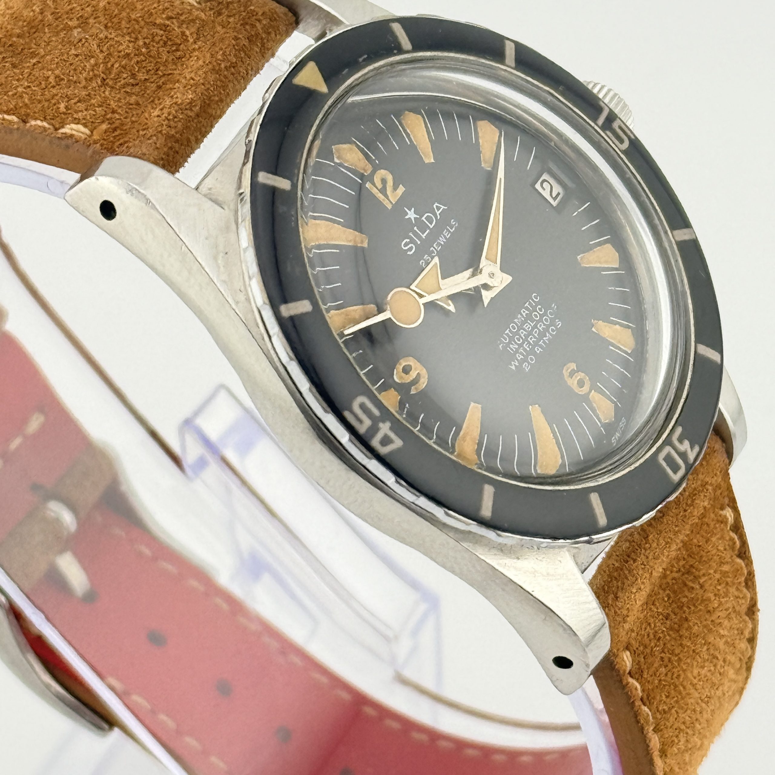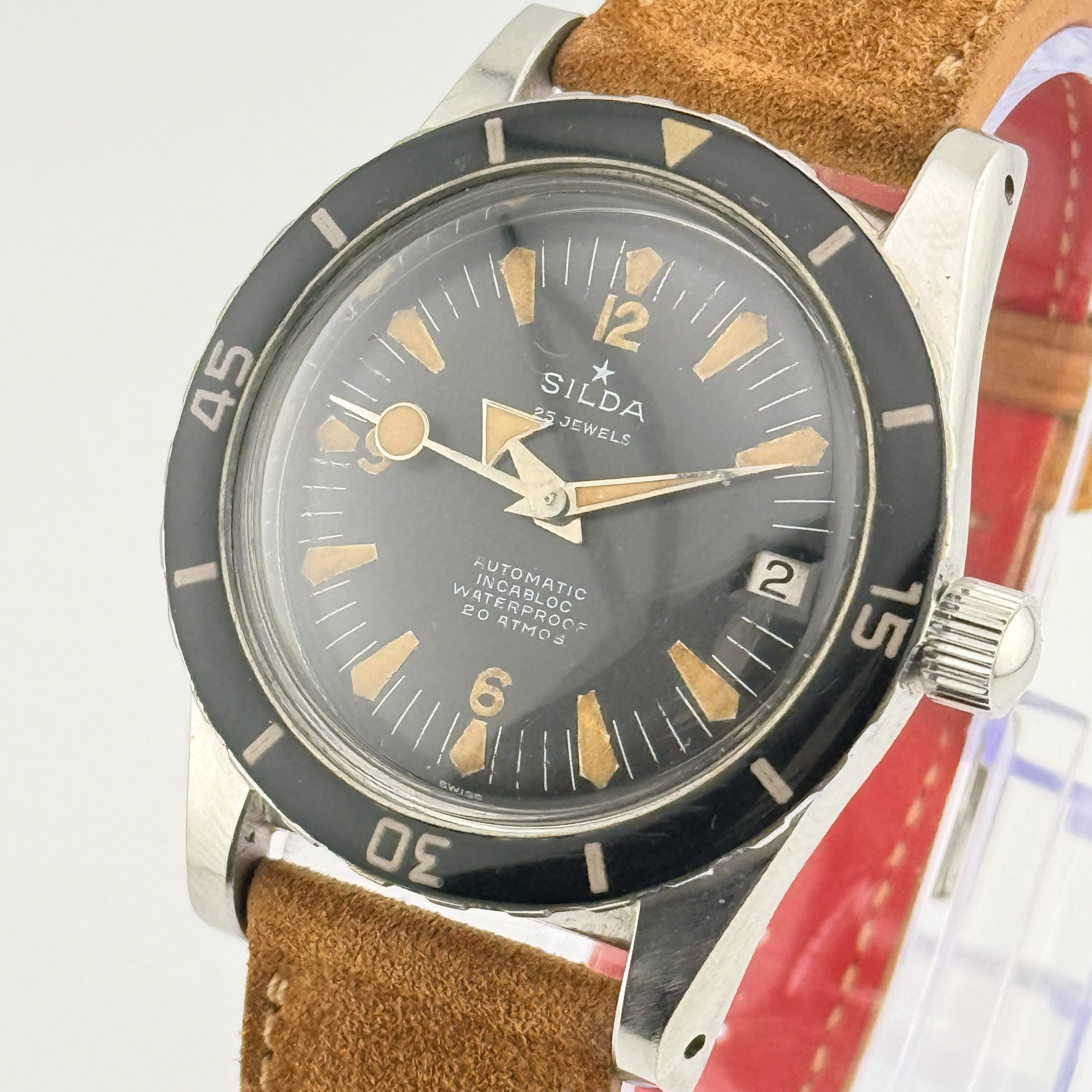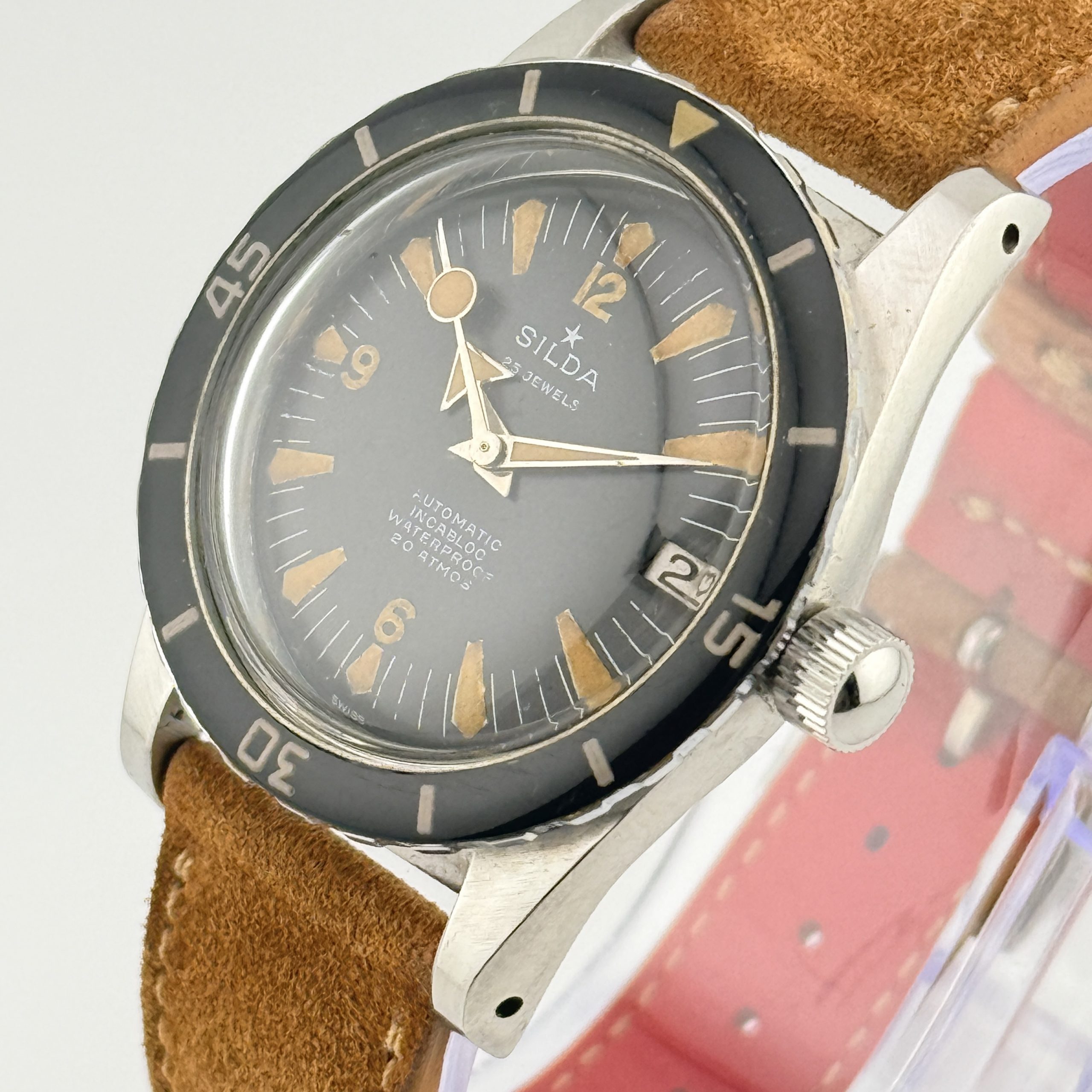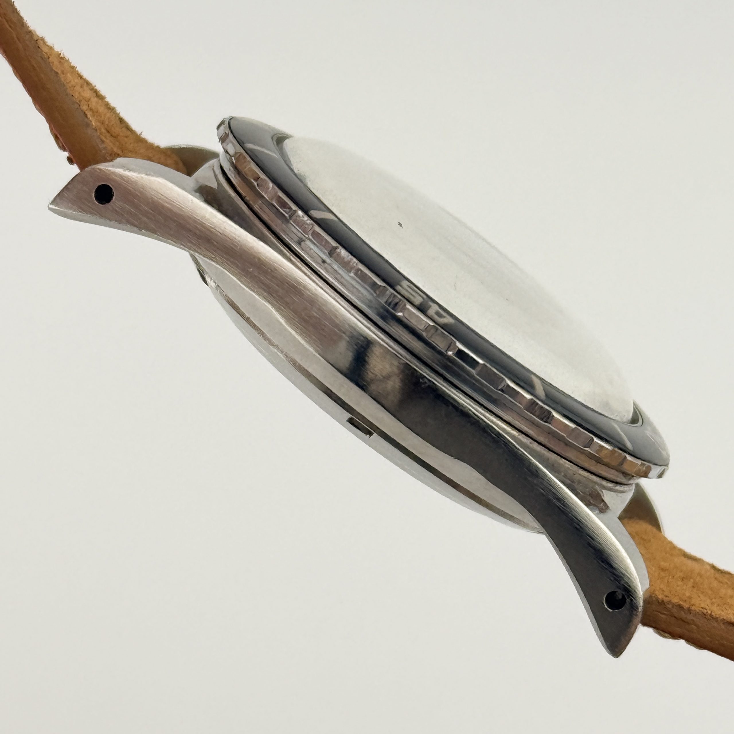 Per il collezionista che cerca un diver fuori dal comune, questo Silda Calypsomatic degli anni โ60 rappresenta una scelta ricca di carattere e autenticitร . La cassa in acciaio da 39 mm, robusta e ben proporzionata, รจ abbinata a una lunetta girevole con inserto in bachelite, dettaglio sempre piรน apprezzato per il suo fascino dโepoca e la sua delicatezza estetica.